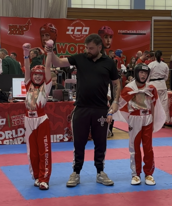 The attached photo shows Scarlett being announced as World Champion in Swansea, and another shows her with her belt and three gold medals.