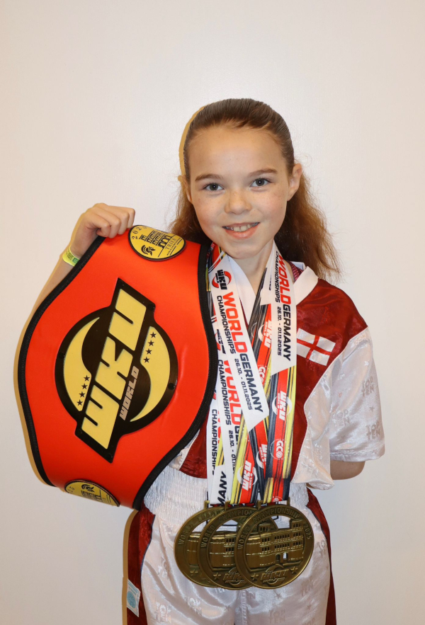 Our talented kick boxer Scarlett goes from strength to strength, and in 2026 she will be hoping to add another WKU World title to her achievements, in the event at Abu Dhabi in August.  Scarlett is moving up in weight category but is confident that she can win a World title for the third year in a row!